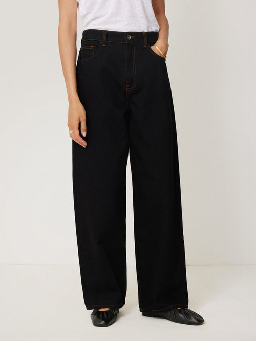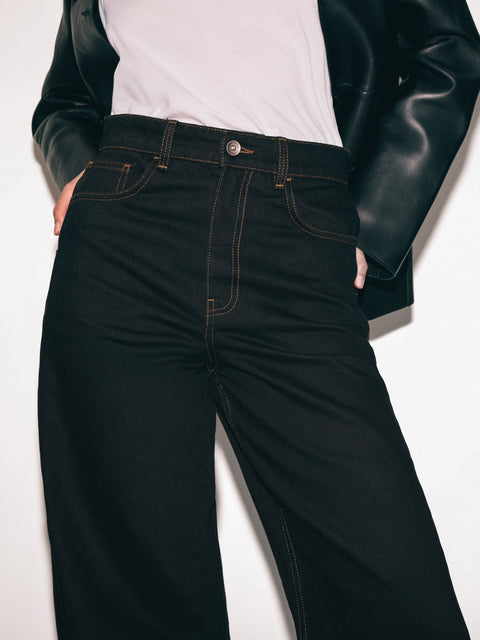 Embrace a laid-back yet ever so elegant silhouette with the Lucia High Waisted Jean – featuring a high waist, slouchy, wide legs and contrast top-stitching. Wear to perfection with a fitted tee or knitted waistcoat.