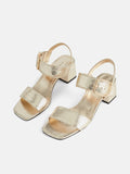 A perfect companion to any occasion. Beautifully crafted heeled sandal launching in a luxurious cracked gold goat leather or modern silver. Wrap around ankle strap and metal buckle fastening. Turned edges & finished with custom EST 1970 Hardware, it will complement any dress or refined tailoring effortlessly. Fit and Features