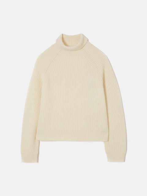 Crafted from responsibly sourced merino wool in a traditional fishermans rib stitch, this jumper will be a constant companion in the new season. Merino wool is softer than other types of wool?because of its?extra fine fibres that feel comfortable against the skin.?Slouchy silhouette with stylish external seams on the raglan armholes, wear the ribbed turtleneck pulled up under your chin to keep out the cold, or folded down. Fit and Features