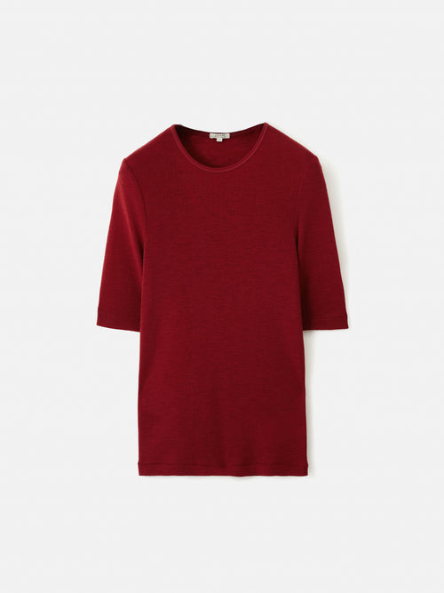 Details: A fine-gauge knit makes this short sleeve top lightweight and breathable, while the merino wool fabrication brings warmth and softness to all your layering scenarios. The slim fit is designed to sit close to your body with an elasticated neck trim for all-day comfort.