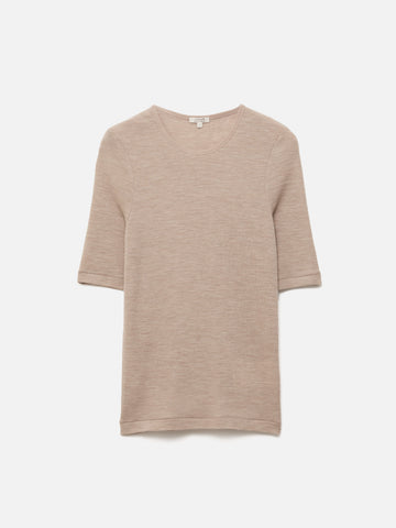 Details: A fine-gauge knit makes this short sleeve top lightweight and breathable, while the merino wool fabrication brings warmth and softness to all your layering scenarios. The slim fit is designed to sit close to your body with an elasticated neck trim for all-day comfort.