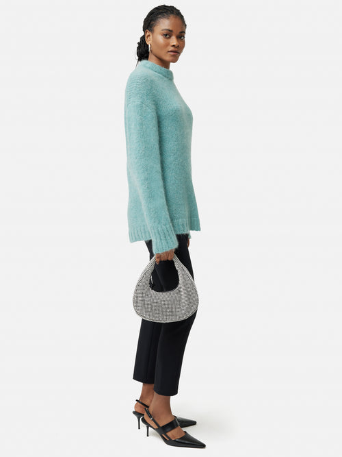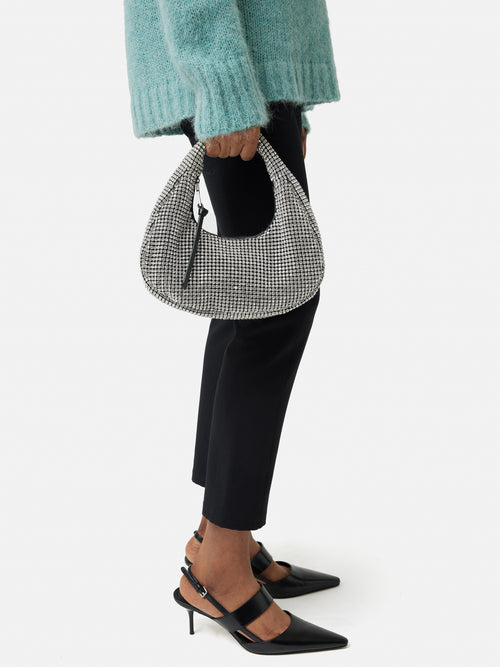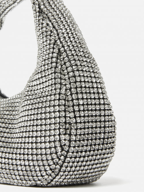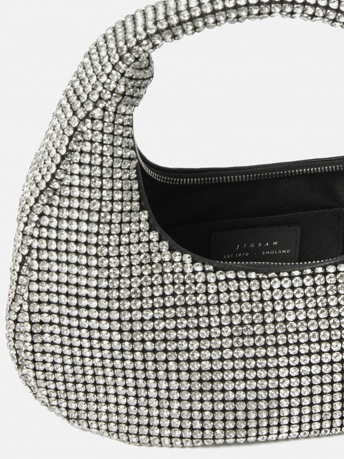 The bag we've all been waiting for, the Crystal Tay is a soft, slouchy shape with zip closure. It is completely adorned in crystals that will transform any outfit into the ultimate party look. Fit and Features