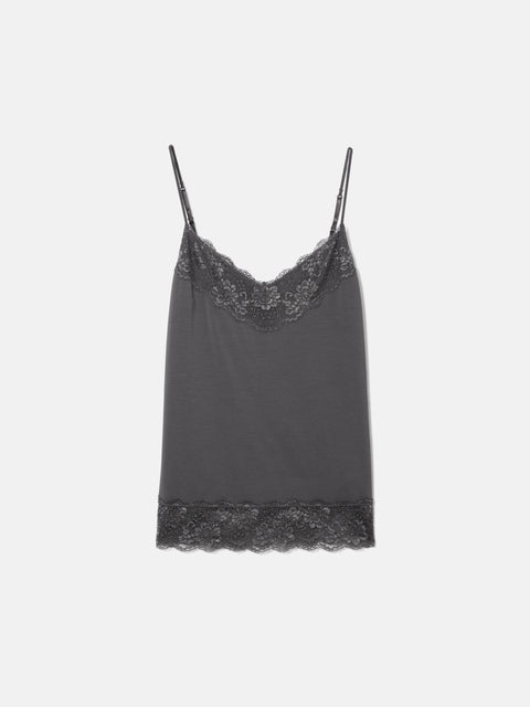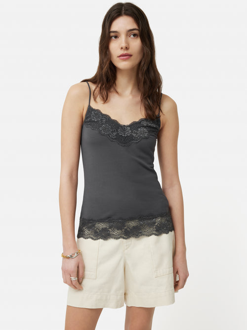 Featured in a range of classic colours, this modal lace vest is a bestselling under layer. Cut from soft modal jersey with slim adjustable straps, lace trim detail adds a subtle vintage-inspired twist.