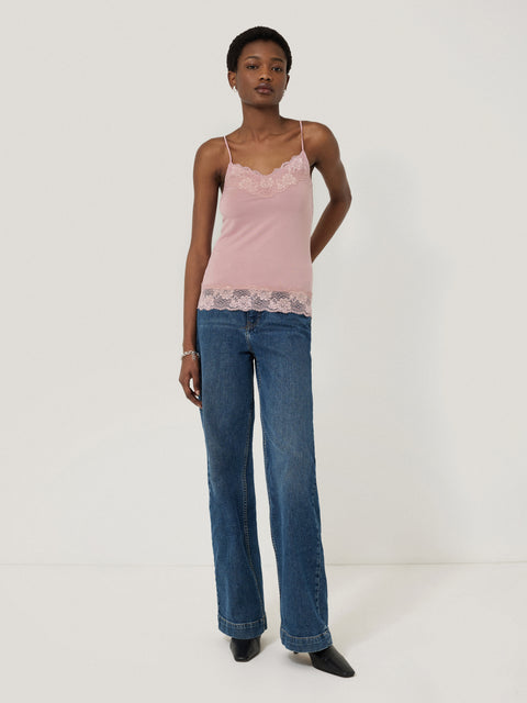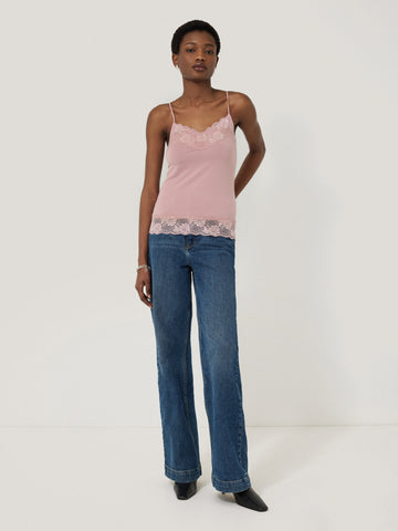 Featured in a range of classic colours, this modal lace vest is a bestselling under layer. Cut from soft modal jersey with slim adjustable straps, lace trim detail adds a subtle vintage-inspired twist.