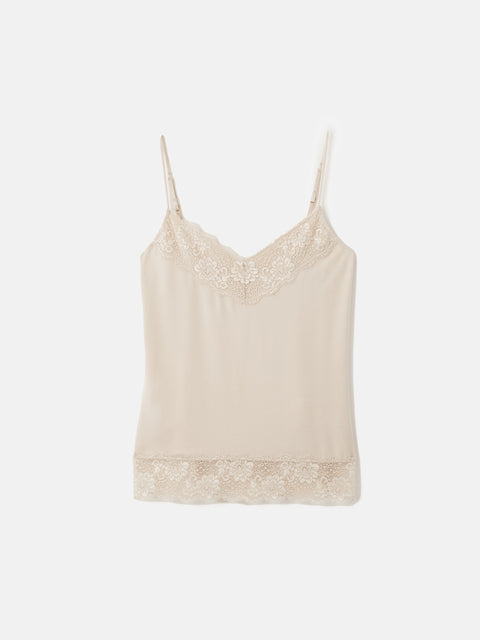 Featured in a range of classic colours, this modal lace vest is a bestselling under layer. Cut from soft modal jersey with slim adjustable straps, lace trim detail adds a subtle vintage-inspired twist.