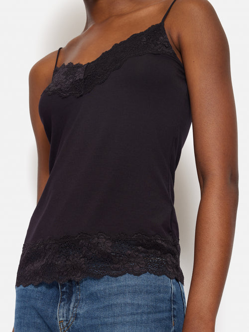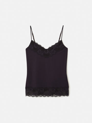 Featured in a range of classic colours, this modal lace vest is a bestselling under layer. Cut from soft modal jersey with slim adjustable straps, lace trim detail adds a subtle vintage-inspired twist.