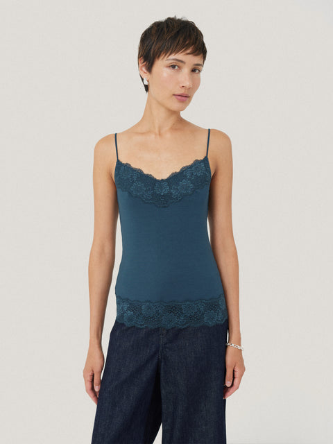 Featured in a range of classic colours, this modal lace vest is a bestselling under layer. Cut from soft modal jersey with slim adjustable straps, lace trim detail adds a subtle vintage-inspired twist.