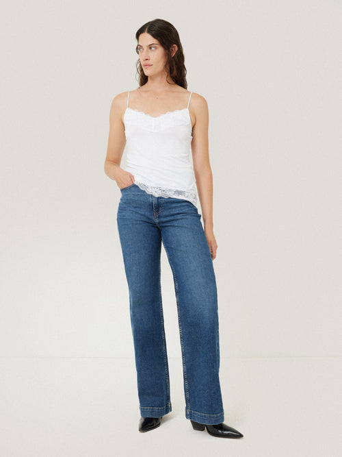 Featured in a range of classic colours, this modal lace vest is a bestselling under layer. Cut from soft modal jersey with slim adjustable straps, lace trim detail adds a subtle vintage-inspired twist.