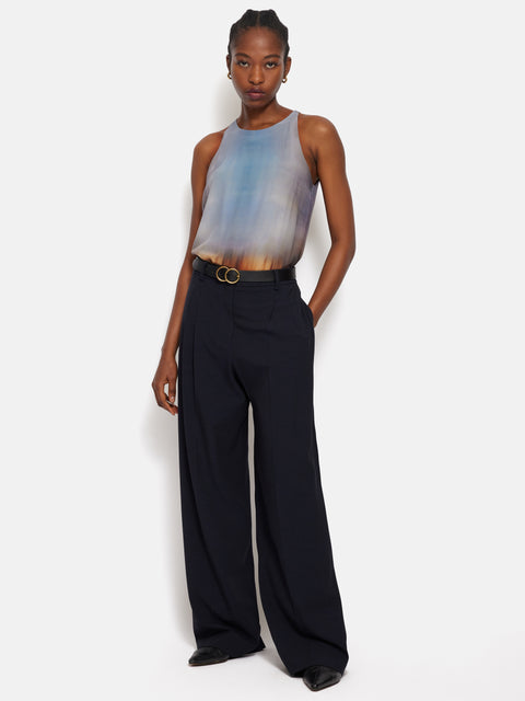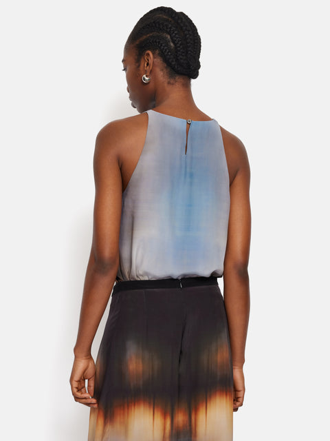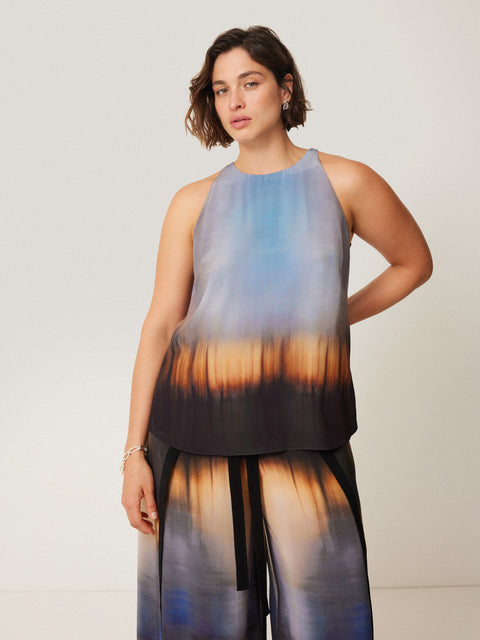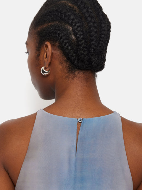 Embrace effortless summertime elegance with the Modern Tie Dye Tank. The print is inspired by an archive tie dye silk cutting, re-worked and designed in the Jigsaw atelier, this is a playful-meets-minimal piece, with side split detailing and a button keyhole fastening.