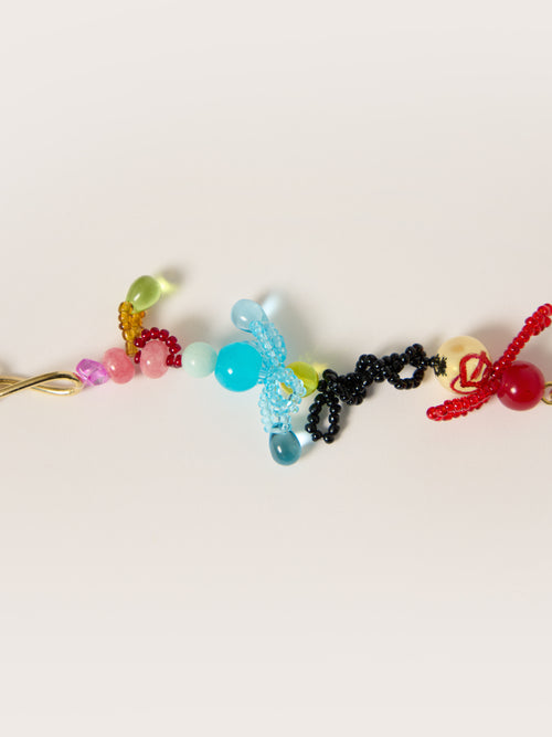 Create a playful wrist stack, starting with this playful bracelet. Festooned with a myriad of colourful beads, charms and trinkets on a 24kt gold-plated chain, we love its fun sensibility, especially with the matching necklace.