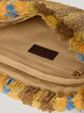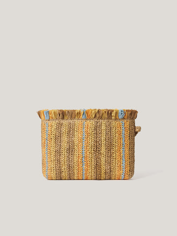 Raffia is undoubtedly one of summer's most-loved textures to elevate any look; as seen with this straw pouch. Playful in a vibrant stripe pattern with a ruffle trim, it's the perfect evening accompaniment thanks to the wrist strap, or to have inside the matching straw tote bag for the essentials you need at hands reach.
