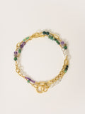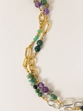 This necklace is designed to be adapted a multitude of ways for playful experimentation. The three-way mixed metal chain design can be detached to wear each piece singularly or together, embellished with a myriad of colourful semi-precious gemstones and beads.