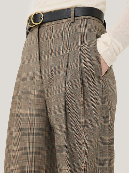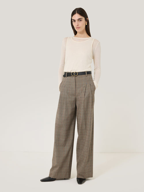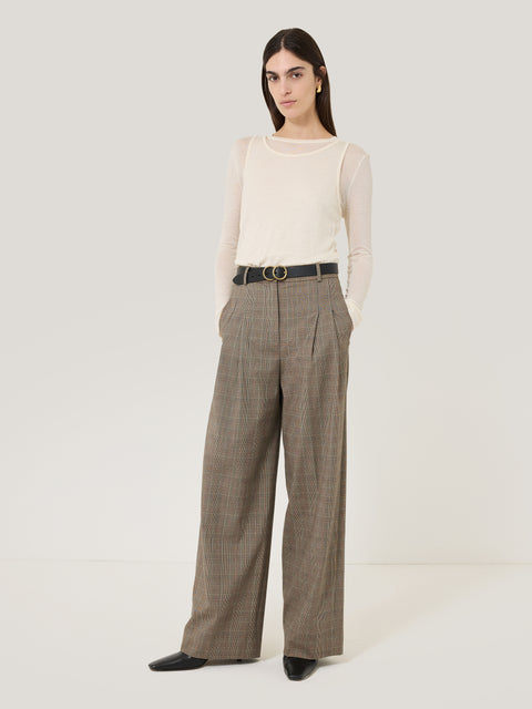 A true piece of heritage for the wardrobe, the Nik trouser combines refined tailoring with a quintessentially British plaid fabric. Designed in-house with a breathable cotton fabric makes this pair perfect for transitional weather, with a roomy wide leg shape and gentle pleating.