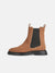 Our pull on Nuburg Ankle boot in a versatile premium tan suede will be the perfect addition to your spring wardrobe. Featuring a flared heel at 30mm height and a contrasting black elastic gusset and sole, wear this boot with jeans or under summer dresses and skirts for an casual yet chic look. Fit and Features