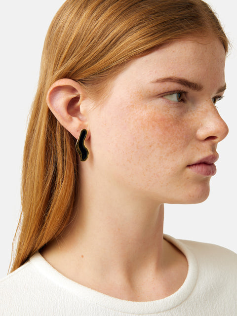 Our Organic Enamel Inlay Earring embraces organic shapes, blending artistry with a luxury aesthetic for a bold yet sophisticated look. Featuring a smooth molten black enamel inlayed in our 24ct gold plated brass. Fit and Features