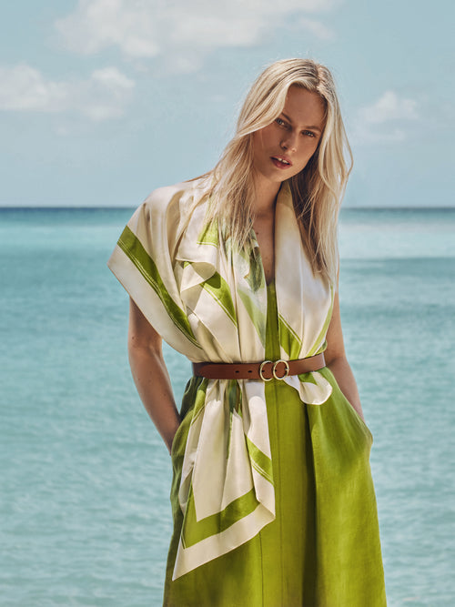 Painted Lily Silk Twill Scarf | Green