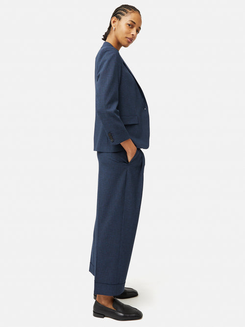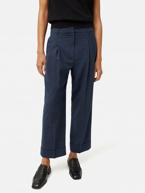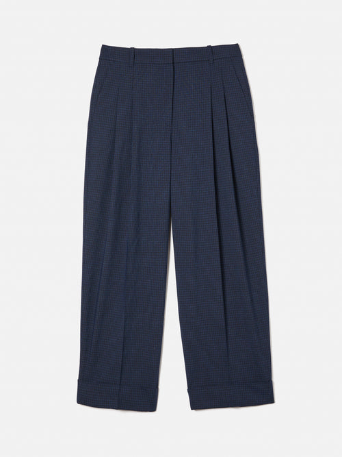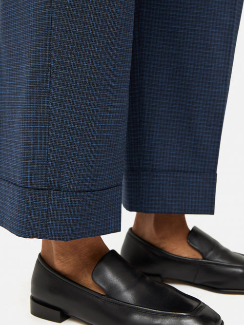 Designed with a petite fit in mind, this tailored trouser showcases pleating details that accentuate the waist and a modern turned-up leg, all in exquisite Italian check fabric. A fresh trouser silhouette that perfectly pairs with our neater-fitting Brook blazer