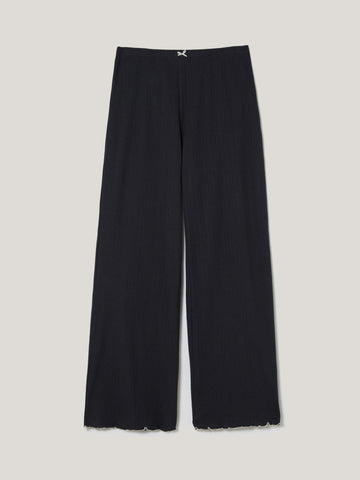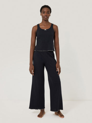 Hit the hay in super-soft comfort with these cropped pyjama trousers. Designed in a bespoke pointelle pattern with contrast baby overlocking detail, they come in two key colours; navy and burgundy with a matching top available for the full pyjama set.