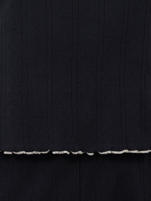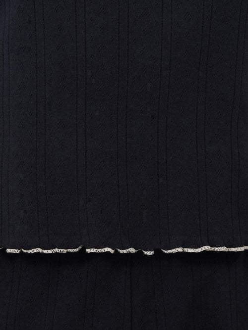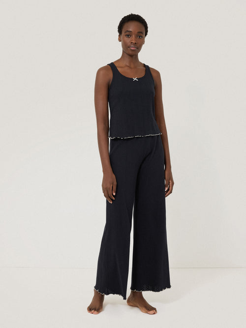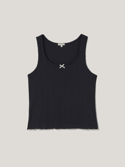 Hit the hay in super-soft comfort with this classic vest top. Designed in a bespoke pointelle pattern with contrast baby overlocking detail and bow detail, it comes in two key colours; navy and burgundy.