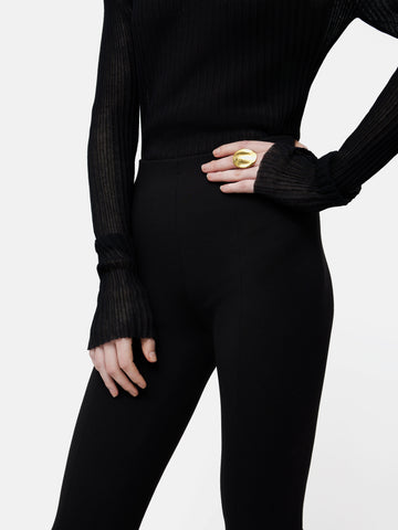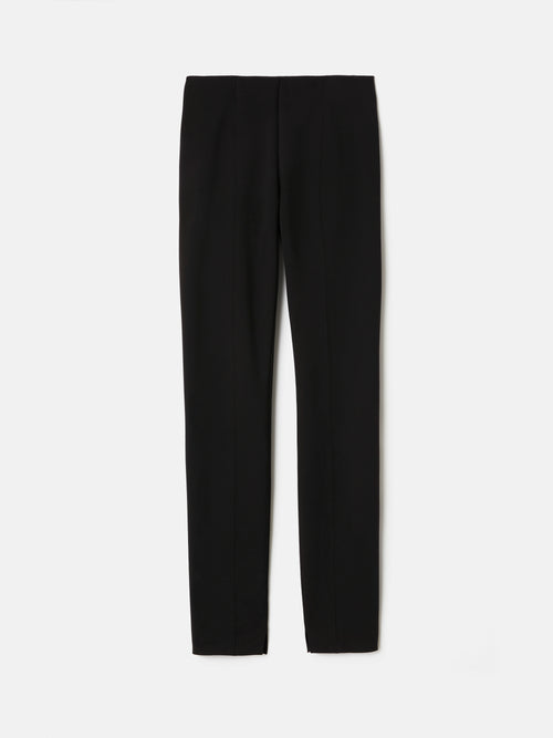 Crafted in robust viscose ponte jersey fabric with great stretch our 'wear with all' legging in classic black works as well with slouchy knits and boots for off-duty days as they do with heels, an oversized shirt and blazer. Slim fitting throughout with twin needle stitching down the centre front and back legs with little split on the inside hem. Fit and Features
