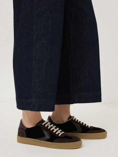 Our signature Portland trainer has been reimagined for the new season in rich chocolate brown velvet and leather, elevating this classic tennis shape with a tactile finish. The simple but beautifully proportioned cup sole creates a slim profile shoe for everyday, finished with wax cotton laces.