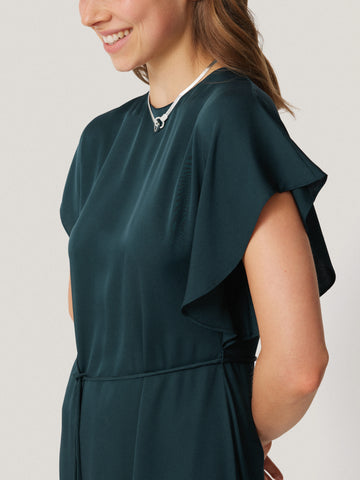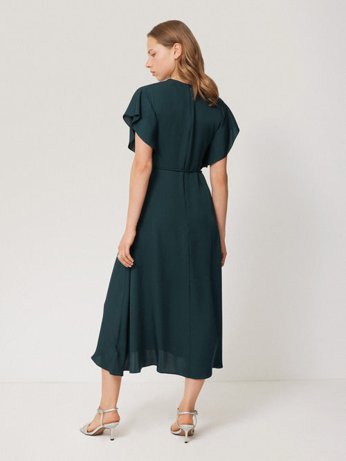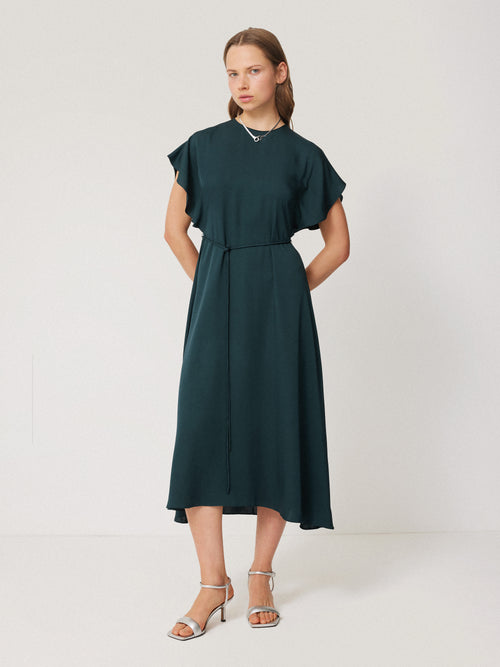 The antidote to a seamless transition from day to evening, this midi dress has been cut from pure silk at our in-house atelier and is designed to drape beautifully on the body with fluted sleeves for movement. A self-tie rouleau belt lets you cinch in the waist to how you wish to wear it.