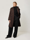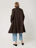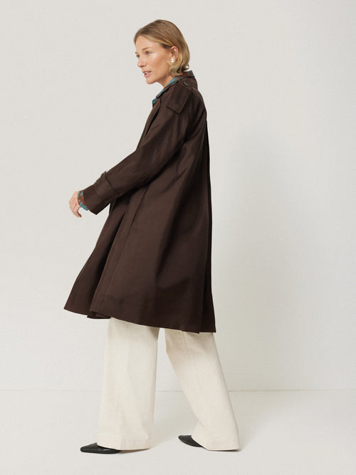 Cut from silk, imagined in a chocolate hue and featuring an above-the-knee length, embrace a fresh take on the classic trench with the Silk A-Line Trench Coat. With a water resistant finish, the deep inverted pleat creates theatrical volume that swings, almost water-like, as it moves. Transeasonal dressing at its finest – its ready for travelling and a cool summer breeze, yet perfectly suited to transition you into autumn too.
