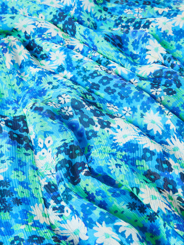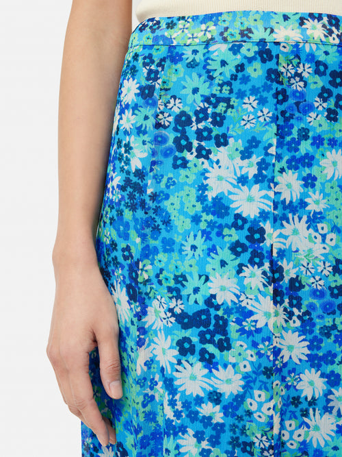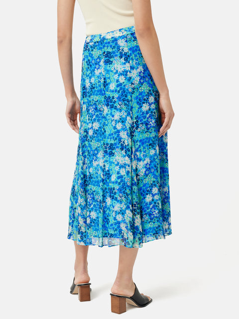 Our best-selling Rave Floral print reimagined in tropical blues and green for the summer season. Cut from a textured viscose crinkle, a midi length skirt with godet details. Fully lined with a side zip fastening creating a sleek silhouette. Style back with a neutral toned top or with our matching Rave Floral Top. Fit and Features