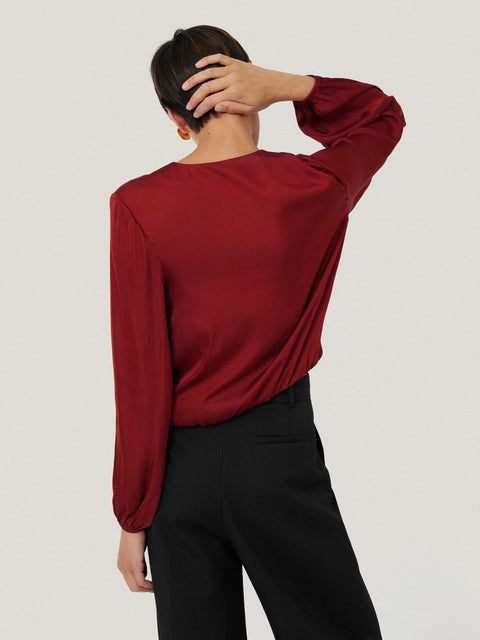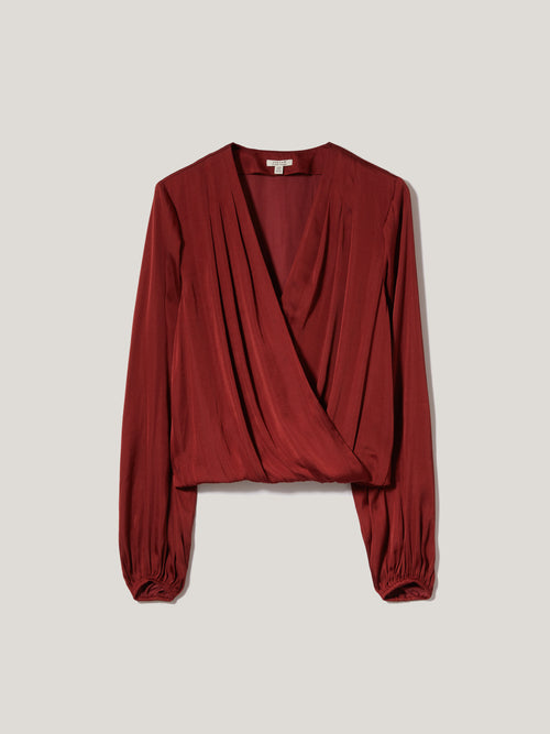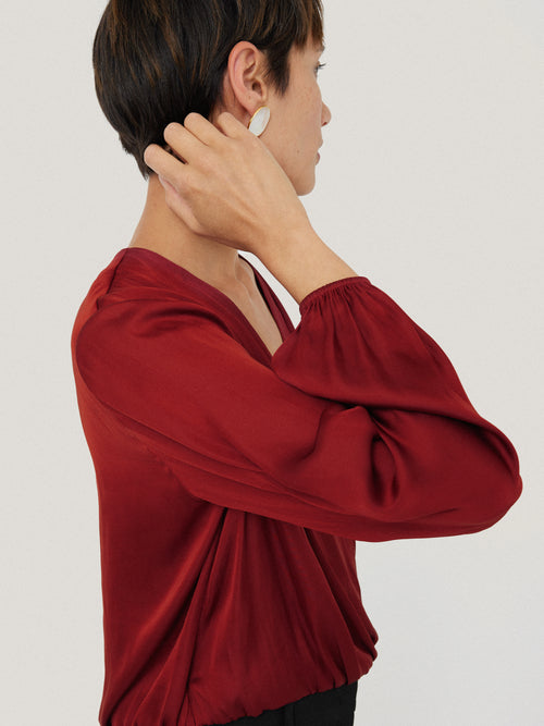 A new shape to bring to our satin drape collection, this wrap top is perfect for dressing up a pair of jeans or as an evening alternative with tailored trousers. Choose from two bespoke Jigsaw shades; Cinema Red and Sherwood Green.