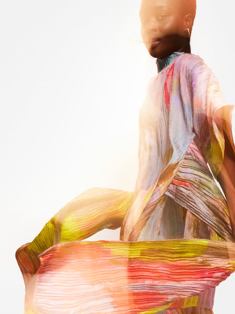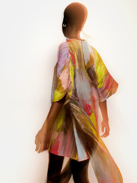 Plisse silk mix meets an abstract watercolour print; imagined in a romantic silhouette. Wear as a top or a minidress - tie to the front or to the back to nip the waist at its most flattering point. The Roksanda Printed Plisse Knotted Tabard: the sartorial joy of dopamine-dressing (but protect your plisse - do not steam).