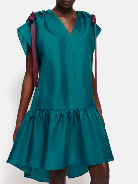 Part of our limited-edition capsule collection with internationally acclaimed designer, ROKSANDA, the artistic, oversized Silk Gazar Short dress bounces gently as you do, adding to its romantic silhouette. Japanese grosgrain ribbons and ruffle detailing punctuate the dress – offset by a sharp V-neckline.