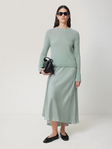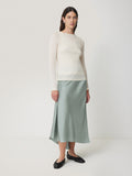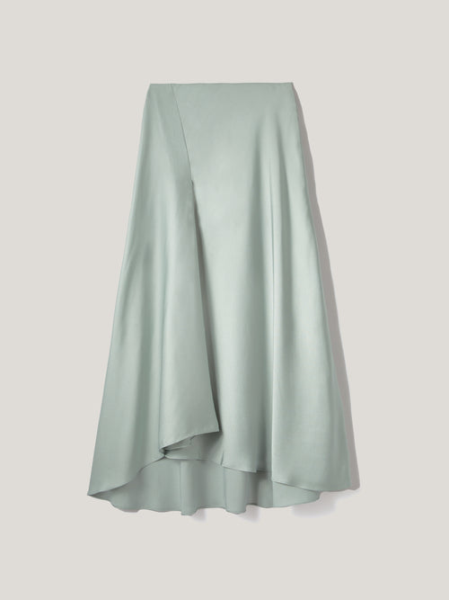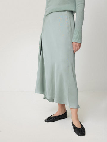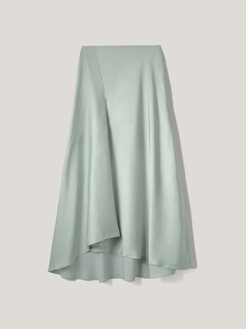 Cut in weighty satin back crepe fabric, our best-selling asymmetric hemline skirt reappears in new colourways. Bias cut to create a full skirt with beautiful movement. Internal elasticated waistband for ease of fit and an invisible side zip fastening. Style this versatile piece back with a t-shirt, or equally with a well-cut blazer and heels.