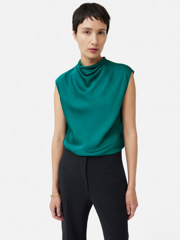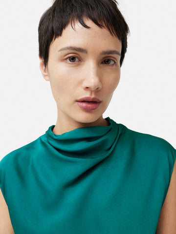 Satin Cowl Neck Top | Green