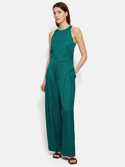 Our sleeveless satin tank top is the epitome of understated elegance. Detailed with side splits and a button keyhole fastening, this design offers a multitude of ways to style it. Pair yours with denim or our matching trousers.