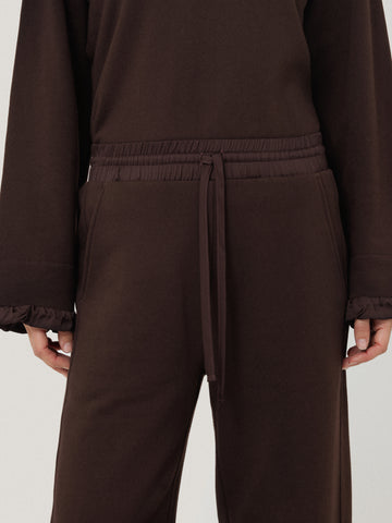 The casual jogger receives a subtle feminine rework for the new season in the form of a shirred satin waistband and ties. This elegant detail instantly elevates the trousers' relaxed shape, finished with side split hems. Made to be mixed and matched with the co-ordinating sweatshirt for downtime.