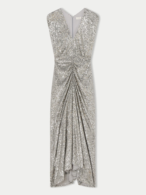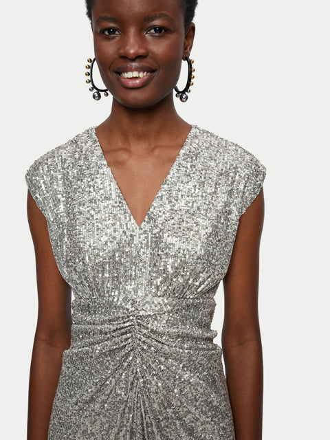 Sequin Ruched Midi Dress | Pewter