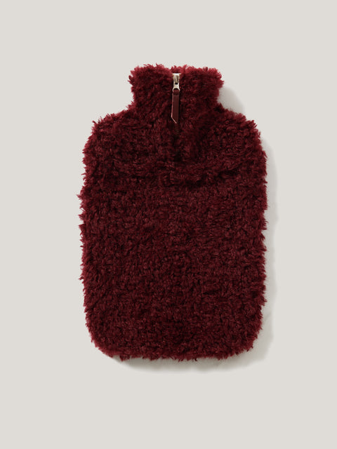 Ward off the cold with our hot water bottle with a faux shearling cover.