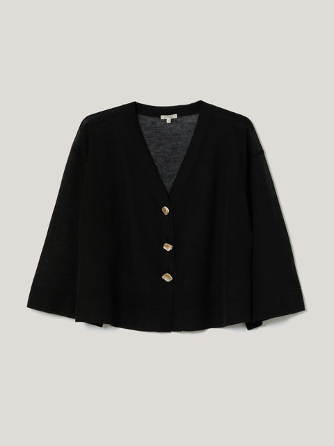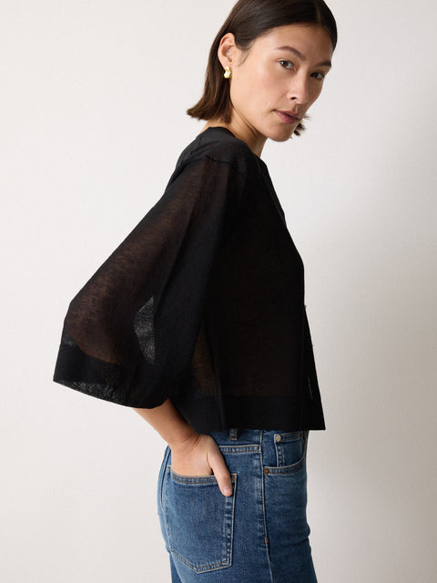 Opt for a barely there cover-up with this beautiful cardigan in a flowing sheer linen to try out transparency in a modern way. Cut for a cropped silhouette with flared sleeves, button up over your linen ensembles for true summer romance.