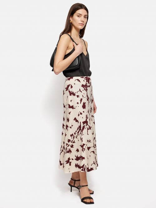 Playfully modernising the classic floral aesthetic with a bicolour graphic one - in warm, neutral tones. The Silhouette Peony Midi Skirt: a novel take on florals.