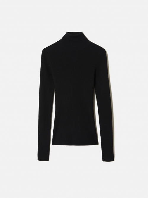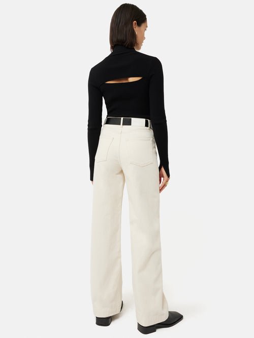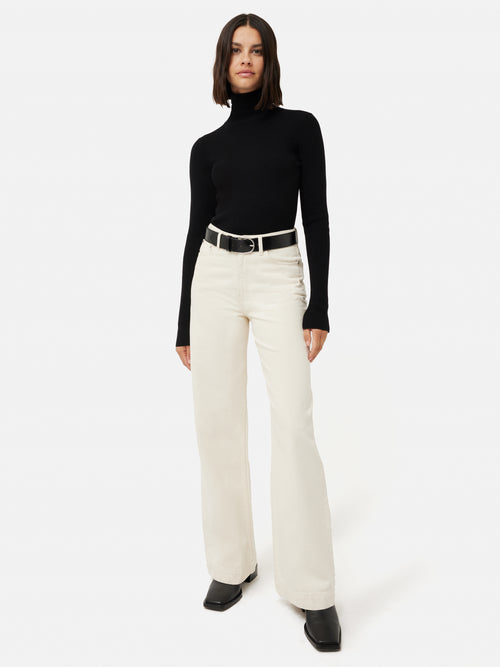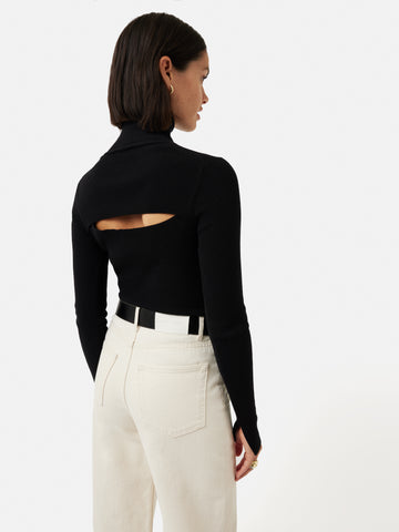 Elevating the classics, a chic polo neck from the front with a sartorial slash back detail is knitted in a super soft viscose wool blend. A body-skimming style that looks ultra flattering styled under oversized tailoring. Thoughtfully designed, the slash is high enough to wear with normal underwear. Fit and Features