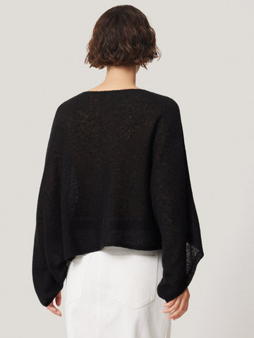 This poncho jumper elevates downtime at home and beyond in a sheer gauze knit, which has been infused with ultra-soft alpaca yarns. Cut for a loose relaxed fit, this knit forms part of a skirt and scarf in the same fabrication for a cosy head-to-toe look.