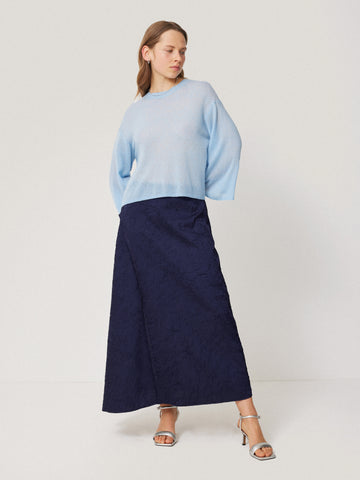 This long sleeved T-shirt elevates downtime at home and beyond in a sheer gauze knit, which has been infused with ultra-soft alpaca yarns. Cut for a loose relaxed fit with wide sleeves, this knit forms part of a skirt and scarf in the same fabrication for a cosy head-to-toe look.