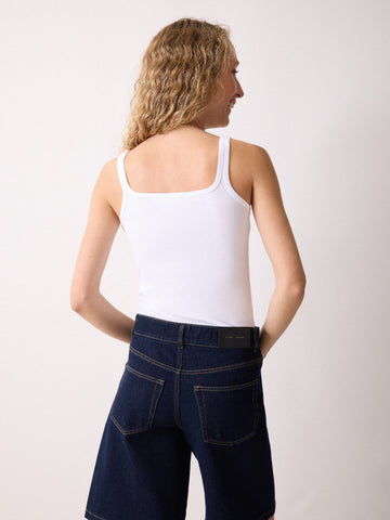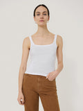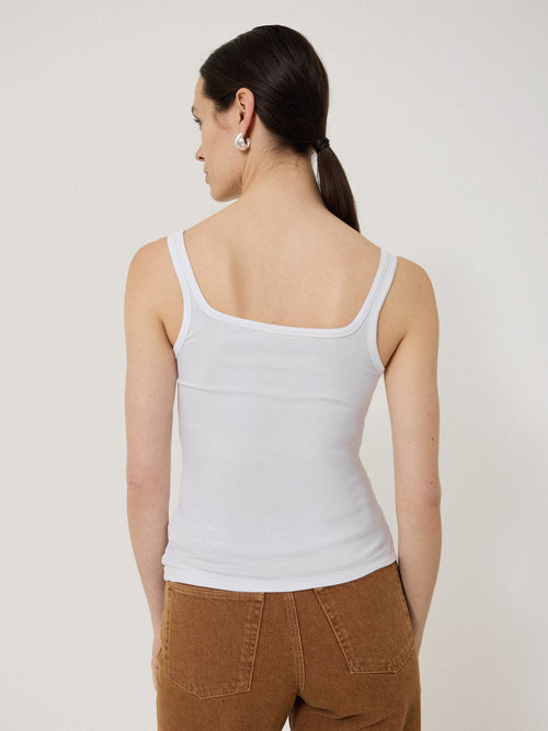 Our latest wardrobe staple introduces a square neckline, providing a contemporary touch to the classic vest top and opening up new layering possibilities for a modern and versatile look. Fit and Features
