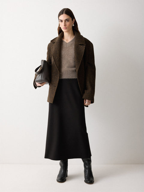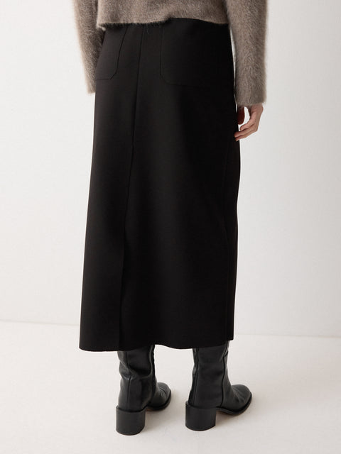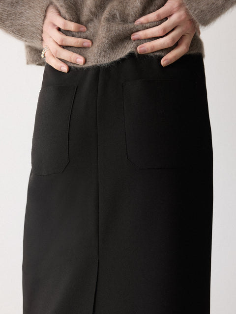 Simple sophistication is our Pencil Skirt With Pockets in a soft black jersey. Perfect for smarter moments, wear to the office with slouchy jumpers to structured shirts. Sofia is 5'9.5 and wears a size 8