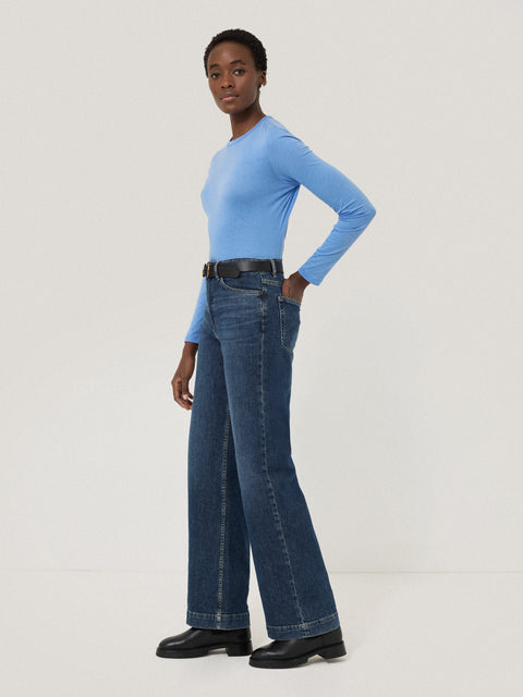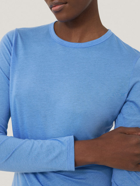 Soft Supima cotton long sleeve T-shirt. Cut in a classic fit silhouette with long slim sleeves this elevated basic serves as a great foundation piece for any outfit. Supima Cotton is a superior in quality cotton with exceptional strength, softness, colour retention and a luxurious lustre.