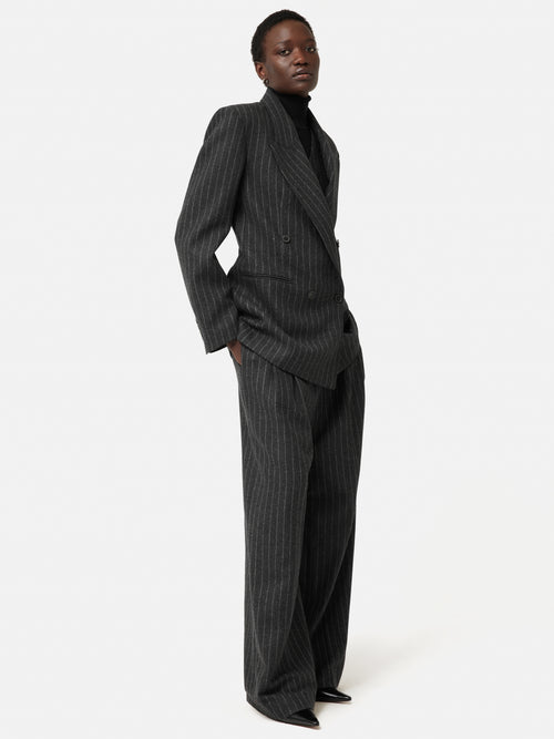 • Charcoal pinstripe wool-blend
