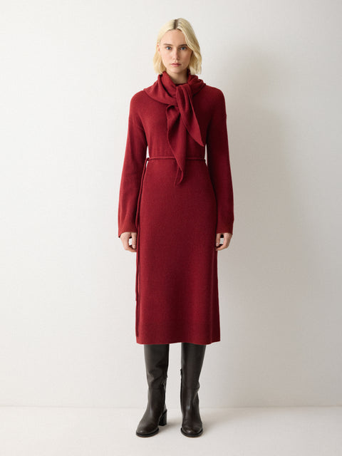 Interactive wardrobe pieces continue to put a playful spin on versatile layering – as this knitted dress demonstrates. Crafted from pure merino wool, it comes with a matching scarf that can be fastened or removed to switch up your look. Aden is 5'11 and wears a size 8
