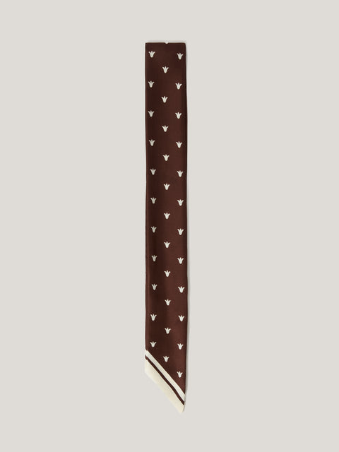 Building upon our bespoke Tulip Voile print is this narrow scarf in pure silk. Finished with a contrasting stripe tips, wear a multitude of ways, whether as a chic bandana or to elevate a raffia tote.