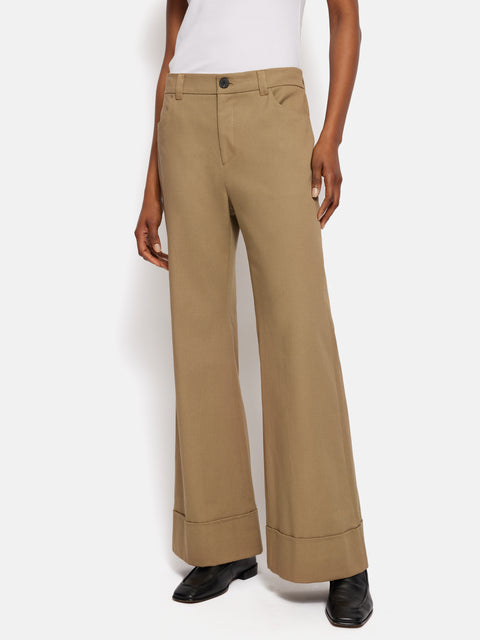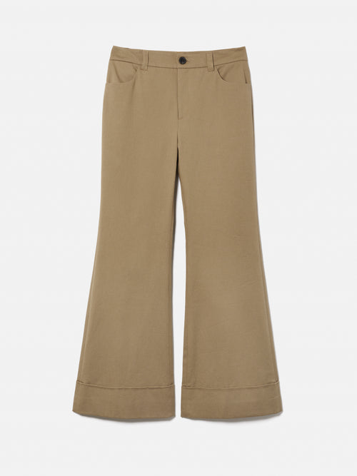 Cut in a Spanish pure cotton twill fabric, these straight leg trousers with deep turn up hems blend flattering with functional. Drawing attention to the bottom of the leg, the turn ups are not completed without a chunky boot or statement kitten heel. Fit and Features