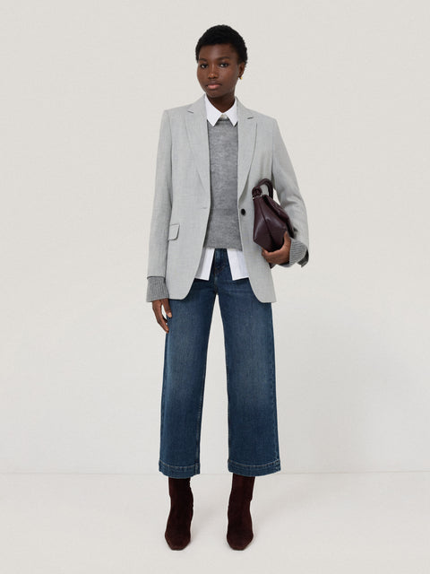 The Tyne is our vintage mid-blue rinse jean with a high cropped ankle. Flattering through the waist and hips, this wide leg silhouette is accented with classic 5-pocket styling and has subtle stretch for comfort from day through to night.